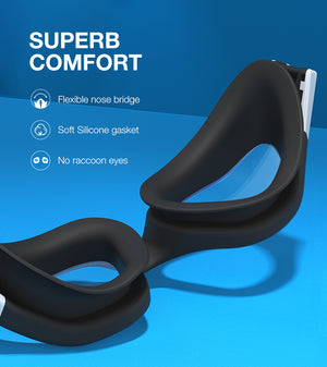 Comfortable Wearing - This swimming goggles come with soft and flexible silicone gasket, adjustable split head strap, TPR ergonomic nose bridge, provides excellent suction and ensure non-slip coverage.