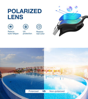 Anti-fog and Leakproof - The polarized swim goggles also feature an enhanced anti-fog technology that can ensure clear vision and protect your eyes, the 3D double seal frame provides excellent fit and water resistance, making them great both indoor and outdoor training